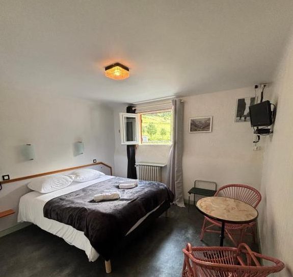 Nos chambres doubles, spacieuses et chaleureuses, sont idéales pour un séjour reposant au cœur des Pyrénées. Elles offrent un cadre cosy, décoré dans un style montagnard, avec tout le confort moderne. Profitez d’un lit douillet, d’une salle de bain privée et d’une vue imprenable sur les sommets environnants. Après une journée d’aventure ou de détente, retrouvez la sérénité de votre chambre et laissez-vous bercer par le calme de la nature.
